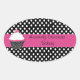 Pretty oval stickers, with a black and white polka dot background and a bold pink band, across the middle, with a whimsical cupcake, on the left side. Text in black is fully customizable for your business. Great for bakeries, home bakers, and cake decorators, to use as seals to cake boxes and other packaging. Personalize for your business.