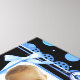 Adorable polka dots baby theme in black and blue pattern. Black with blue stripe front panel and scalloped spine trim. Center panel has photo template with bow and tag accent ready for your uploaded baby picture. Then customize the banner area below with your baby's birth information and name. Baby girl version available as well. Text is completely customizable by you. To adjust font color, etc. click on "customize it" link.