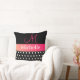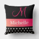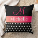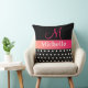 Polka Dots Black White Pink Monogram Script Throw Pillow