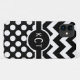 Cute girly trendy chic trio name monogram design for your first, middle and last name initial letters. Classy cool black and white polka dot and chevron pattern graphic with customizable monogrammed area. A modern abstract geometric classic personalized gift for girls.