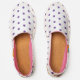 These shoes are amazing, well constructed, vivid color durable fabrics, can wear comfortably without socks…and pick your liner color. I ordered several and wore all Summer into Fall. A GREAT choice and hundreds of fabrics to choose from! Thanks so much to the designers…a real winner!! Order one size up to wear with socks. Usual size is snug at first but does stretch after several earrings. .