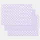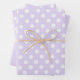 This soft lavender wrapping paper set includes three coordinated sheets: two sheets adorned with crisp white polka dots and one sheet in a solid soft lavender for a delicate, elegant contrast.
