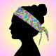 Cute colorful Headband with a Polka Dot repeat Pattern Design in Blue, Pink, Teal on a Yellow Background