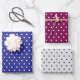 Polka Dots Pattern Set of 3 Blue Burgundy Gray Wrapping Paper Sheets