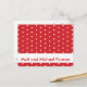 Add your own text in any color that will work. We're offering this polka dot design in tons of color combinations like black and white, mustard and white, pink and brown, red and white, even robins egg blue! Dots are so cute and so trendy! Excellent for Save the Date cards, shower invitations, or engagement announcements.