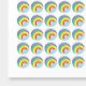 Rainbow on Blue with white polka dots on candy favors for Rainbow Birthday Party.