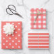 Polka Dots, Stripes and Gingham Patterns in Coral Wrapping Paper Sheets