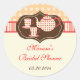 Modern and chic custom bridal shower sticker. Features a tea pot and tea cups with polka dots in different colors. Trendy design in bright colors. Use it for party favors or to seal envelopes.
