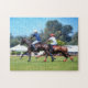 My original artwork is featured on this pretty horse puzzle, consisting of my original photograph of two polo players in action going after the ball in the air. I styled it with an illustrated painterly technique for an artsy appearance. The size of this unique nature puzzle is 11” x 14”, and in the ‘challenging’ category, however you may size up or down as desired.