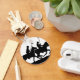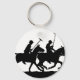 Black and white silhouette illustration of polo players on their horses, swinging mallets