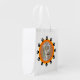 Glowing orange and yellow rings are surrounded by 12 black paw prints. Insert image of your favorite pet.
