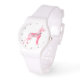 I only have one complaint. I ordered the watch with clear case and strap, and what was sent was white case and strap. I'm going to keep it because 1) it looks very nice in white, and 2) it would take too long to get a replacement made and sent in time for my occasion. Aside from the mix up with the color, the watch does look very good in white. The purple dial is actually sparkly which did not show in the online images. That was a nice surprise. If you like Swatch watches this is very similar to those. It's 33.6mm in diameter, 10.5mm thick, and 40.6mm lug to lug. Stainless steel case back says 3ATM/30m WR, so no swimming or showering or submerging this one. If you like Woodstock, this is a great choice.