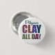 It's a polymer clay day! Wear this button to your next polymer retreat, at an upcoming class, or on any blissful day at your clay table. The letters of "CLAY ALL DAY" are filled with Jubilee Cane millefiori designs by Lisa Clarke.