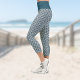 These cool beach theme women's leggings feature a Polynesian ocean pattern of waves, decorated with dots, and lovely white and greenish teal blue flowers. The high waistband is in a coordinating greenish teal blue. These tropical patterned leggings will remind you of the ocean whether you're wearing them in the yoga studio, heading to a beach cottage, or working out on the trail.