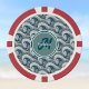 These beach theme poker chips feature a Polynesian ocean pattern of teal and white waves, decorated with dots, and loverly teal blue flowers. Your monogram initial and name appear on a circle of light teal, with the initial in dark teal and the name in foamy off-white. This coastal style playing card set will remind you of the ocean, whether you're playing cards in a beachside villa or Wednesday poker night. These chips coordinate with a set of playing cards.