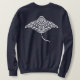 Gorgeous sweatshirt with a decorative tribal tattoo design. The back has a large white manta ray. The front has a smaller ray. Polynesian tribal art sweatshirt.