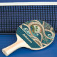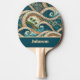 These ping pong paddles will remind you of the beach, surf, and sand, whether you're playing in a coastal cabin among summer breezes or in a basement in snow country. Swirls of Polynesian waves reveal tropical blue and geen jewel tones of the South Pacific and palm trees in a vintage style, remniscent of beach-inspired ethnic art or tattoos. Your name appears in sandy tan on a ocean color teal background, so make sure to type your name in the Personalize section.