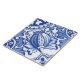Pomegranate Bloom showcases a richly detailed fruit motif surrounded by flourishing foliage and baroque scrollwork. This design blends traditional Ottoman or Persian tile artistry with a contemporary two-tone palette of vivid and soft blues. The dynamic pomegranate form, symbolizing abundance and life, becomes the centerpiece of a tile that's both decorative and meaningful.