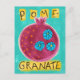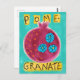 This fun and colorful pomegranate features cute orange dot accents, blue fun flowers and yellow handdrawn text.