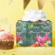 The original photograph by ZoeSPEAK on this Wrapping Paper, of pomegranates growing on a tree in a tropical garden, is a closeup view. The developing fruit is in a beautiful shade of red - pomegranate! And the green leaves of the fruit tree curve in a sculptural way around the shape of the pomegranates, which look like flared bells against the dark green background. There is text, in white script, which reads "Merry, Merry!" and "Happy, Happy!". This is set to personalize to suit your needs. Or it can be deleted if you prefer.