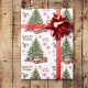 The repeated pattern on this Christmas wrapping paper includes an image of an adorable Pomeranian dog sitting in a wicker basket. The basket is decorated with a red bow, and sits beside a Holiday tree. Stylized red and green text says MERRY CHRISTMAS", and your own signature is in two fields for you to customize. Other images included in the pattern include red decorative snowflakes, candy canes, and a peppermint lolly pop.