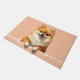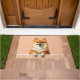 The soft pastel apricot background adds a warm and cheerful touch, perfect for welcoming entryways. Designed with extra space at the top and bottom, it allows easy personalization with names, welcome messages, or custom text—making it ideal for unique dog-themed doormats and thoughtful gifts.