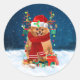 Pomeranian dog with Christmas gifts Classic Round Sticker