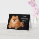 Go into customize and change text, YOUR GREETING HERE, to whatever you want. For example Happy Birthday, Thank You, Thinking Of You, Get Well, Miss You, Congratulations, Anniversary, etc. This card was left blank inside to allow you to covey your own personal message. The Pomeranian is a cocky, animated companion with an extroverted personality. This compact little dog is an active toy breed with an alert character and fox-like expression. Today, the Pomeranian is a popular companion dog and competitive show dog. They can come in all colors, patterns, and variations although orange and red are the most popular. Pomeranians are very intelligent dogs that love to please. Because of their outgoing temperaments, they can be very good family dogs with the right training. Due to their small size they don’t require much exercise, but are an energetic breed that needs attention from their people frequently. They possess a thick double coat, which needs to be brushed on a regular basis.