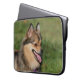 This laptop sleeve looks exactly as it does in picture. I actually thought is was too small until I put my laptop in it. It's a bit snug, but it fits. Figure it will stretch a bit, hopefully seams hold. Them seem good for now. I didn't have any personalization done, looks great as is.