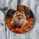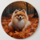 Pomeranian in Autumn Leaves Fall Inspire Button