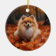 Pomeranian in Autumn Leaves Fall Inspire Ceramic Ornament