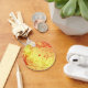 Sun-drenched colors highlight this drawing of a Pomeranian dog surrounded by flowers and leaves. A happy key chain for pet owners or animal lovers!