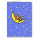 Original design by Off-Leash Art with an orange Pomeranian sleeping on a crescent moon in the starry sky. Cute whimsical design for Pom and dog lovers.