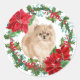 Pomeranian Poinsettia Holly Holiday Wreath Classic Round Sticker