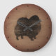 Pomeranian Silhouette Rustic Large Clock
