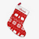 Pommie Lover’s Christmas Stocking. Christmas sweater style pattern with white Pomeranian silhouettes. Personalize this cute holiday stocking with your name or your dog’s name. A perfect addition to hang on your fireplace mantle. Everyone wants to be included in the seasonal festivities and our fluffy friends are no exception. Treat your poofy family member with a custom Xmas stocking. This Pomeranians Christmas stocking is great for both Poms and Pommy lovers. Visit Jenn’s Doodle World for even more dog breed stockings and pet lover’s holiday decorations.