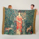 POMONA HOLDING FRUITS IN GREENERY, FOREST ANIMALS FLEECE BLANKET