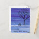 A watercolor landscape of a welcoming bench on the edge of a pond in the evening adorns this customizable postcard!