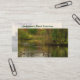 This business card advertises a pond service company which does pond planning, design, construction, maintenance, cleaning and management. It features a scene of peace and serenity. Geese and ducks are swimming as trees in full autumn foliage and luminous sky are reflected in the water of this well-constructed pond. All text can be customized to suit your individual situation.