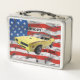This metal lunchbox is perfect for any car enthusiast. The unique design of a pontiac gto -the judge car, on a american flag background, is sure to catch anyone's eye. All text is fully customizable to meet your needs, making it the perfect gift for any car lover.