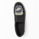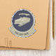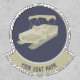 This iron-on patch features an illustration of a pontoon boat in tan set against a dark slate blue background and is ready to be personalized with the name of your pontoon boat or other text.