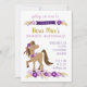 Party invitation for a horse or pony themed birthday or shower in purple and gold. Contact seller for custom color options.