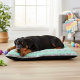 My dog instantly fell in love with this bed. It's super soft and plush. She hasn't stopped laying on it and even when I move it, she jumps on it and gets moved with it. The removable cover is easy to take off and wash. Highly recommend this and it makes a great gift. Fanstastic printing. The colors are 100% accurate and bold.