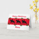 Illustration of a little girl trotting on a pony. Three cute black silhouettes trot across the page on a green and white background surrounded by holly. Striking design. Easily personalise this cute Christmas card by editing the template text. Thanks for viewing my horse designs.