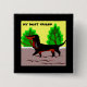 This design was meant for all those dog lovers out there that think of their pet as a best friend. A black and brown dog is walking very proudly in the gravel in front of a couple of trees. "My Best Friend" is printed on this button. A great pin to wear on a special day.