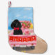 Perfect! Exactly what I ordered! I uploaded a picture of my blue chow, and the screen print was incredible. the back side of the stocking was the red and black checkered print. my puppy's name was also printed on the cuff of the stocking. PERFECT! Highly recommend this product! My puppy's name was screen printed onto the cuff of the stocking, the font was perfect!