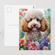 Postcard features an adorable poodle with its tongue hanging out in a friendly expression, framed by colorful flowers. A bright, floral animal portrait perfect for spring or anytime!