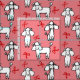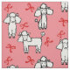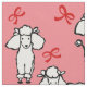 A fun fabric for dog lovers featuring white poodles with bows on their ears and floating red hearts on a warm pink background. You can change the background color to fit your needs.