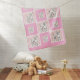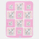 Baby blanket with a pink snooty poodle pattern. Stylized poodles with pom poms and pouts.