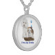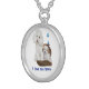 I chose gold plated so that the metal would not react with my skin oils and perspiration. But, I changed the necklace from the gold plated one to a sterling silver. My skin cells will tarnish the silver. But it will not look as bad if some portion of the gold plated necklace somehow became compromised. Zazzle did a find job turning the picture into a pendant for me. As you can see, the colors and the printing of the final product, match the preview. The picture I took is not very clear. But I am pleased with the product I received.